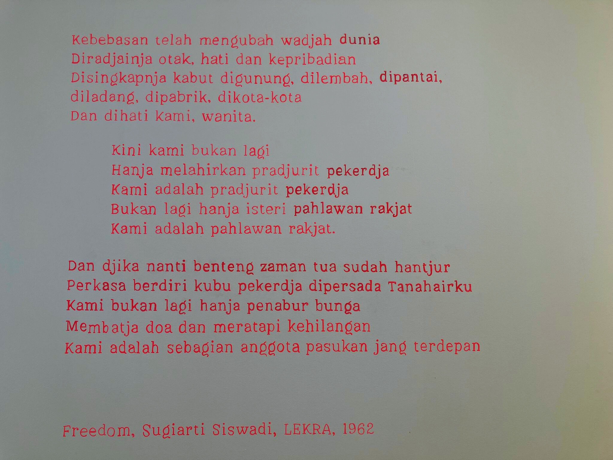 Kunstenaars: Fitri DK (ID), Dian Septi Trisnanti (ID), Tamarra (ID), Marie Civikov (NL), Nabila Ernada (NL/ID), Ramal Karmarama (ID), Rizqita Naherta, (NL/ID), Nynke Deinema (NL), Clementine Oomes (NL), Vera Kersting (NL)